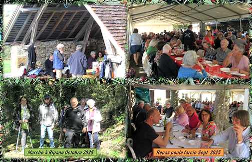 Repas poule farcie: Dimanche 12 Octobre 2025 Les cuisiniers, les cuisinières de l'association vont cuisiné des poules avec leur farcie pour ravir les papilles de tous. Animation par l'orchestre Charly Music. Marche: Dimanche 05 Octobre 2025 Les adhérents de l'association se retrouvent ce dimanche matin à 10h pour une marche sur les nouveaux chemin de Strenquels. A midi pique nique au four de Ripane.