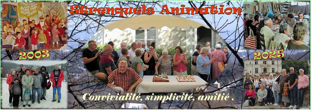 Dimanche 05 Janvier 2025 - Marche et repas: A partir de cette année l'association organise le 1er dimanche de l'année une journée adhérents. A partir de 14 h une ballade autour de Strenquels, au retour jeux de carte puis le repas de fin d'année, organisé par l'association pour ses membres.